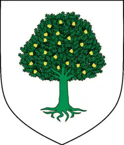 From Ireland passed to France Bernard then Bernardo O'Kelly, who served in the Army with so much distinction that he came to be Governor of a hold with patent of Colonel, and from this country he transferred to Portugal, where he married. He was the father of Guilherme O'Kelly, Lieutenant of Cavalry of the Regiment of Moura, and Hugo O'Kelly, first Colonel and then Brigadier of the same Regiment. They were relatives of Count O'Kelly, Lieutenant-General of Infantry in the Armies of the Holy Roman Emperor. That Guilherme O'Kelly married Mariana Josefa, and from then on was born Diogo O'Kelly, Captain of Horses in the Regiment of Moura, to whom was issued a Chart of Arms, of succession, with those of his surname, on 14 April 1785. From Dublin, County Dublin, Leinster, Ireland, came also James Thomas then Diogo Tomás O'Kelly, dance master, who was an attendant of the Infante António of Portugal, and was prosecuted by the Holy Office for being a Freemason, iniciated in 1735, and his brother Michael then Miguel O'Kelly, contractor of the factory of glasses, iniciated in the Freemasonry in 1736 and prosecuted with his brother. Hugo O'Kelly, above-mentioned, also belonged to the Freemasonry and was implicated in the same process. The arms of the O'Kelly family are: broken, the first azure, a tower argent over a mount proper, between two lions assailant or, chained to the tower by the waist with chains sable, the second argent, with six crosslets recrossed, on top, whittled, sable, put 2, 2 and 2, and chief gules, charged with three roses natural argent; crest: a greyhound running argent, brindled sable; motto: TURRIS FORTIS MIHI DEUS.[2] A third branch came to Portugal in the person of Waldron Kelly of Maddenstown, born in Maddenstown, County Kildare, Leinster, on 1 October 1794, who died at the Caribbean Sea, near Lucea, Hanover Parish, and Montego Bay, Saint James Parish, Cornwall County, Jamaica, on 11 November 1836 and was buried there. He married twice, firtsly to Jane Owens and secondly to Ana Ludovina de Lemos Pacheco de Aguilar, born in Cedovim, Vila Nova de Foz Coa, on 1 October 1794 and died in Dublin, County Dublin, Leinster, 4 April 1883, and buried there, a relative of the 1st Viscount and 1st Count of Samodães, and had issue by both marriages.