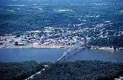 Until around 1977, no significant changes to US 36 were made.[6] Then, Interstate 72 (and another part of the freeway that would later become I-72) extended from Monticello to Jacksonville. As a result, US 36 moved to a part of I-72 from Decatur to Jacksonville.[7] By 1979, the freeway then extended west near Riggston.[8] By 1988, it extended west to IL 100.[9] At this point, the Valley City Eagle Bridges were completed. However, by 1992, the twin spans, as well as the freeway west to IL 336, opened.[10] By 1996, the Interstate 72 designation extends west using the new US 36 freeway and ends abruptly as soon as US 36 leaves the freeway. Also, Interstate 172 acquired the whole of the IL 336 freeway portion.[11] In 2000, I-72 extended west to connect to Hannibal, Missouri, after a new Mark Twain Memorial Bridge opened. As a result, US 36 moved northward to get onto the new bridge. After that, the old bridge was demolished.[12][13]
