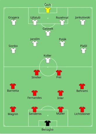 - ^ a b c "Team Line-ups – Group A – Switzerland-Czech Republic" (PDF). Union of European Football Associations. 7 June 2008. Archived from the original (PDF) on March 7, 2016. Retrieved 10 June 2012.