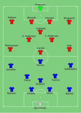 - ^ a b "Tactical Line-up – Italy-Denmark" (PDF). UEFA. Union of European Football Associations. 13 July 2013. Archived from the original (PDF) on September 24, 2013. Retrieved 13 July 2013.