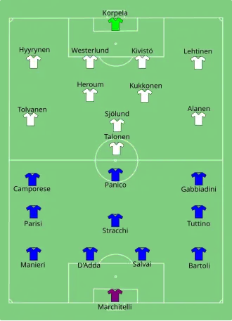 - ^ a b "Tactical Line-up – Italy-Finland" (PDF). UEFA. Union of European Football Associations. 10 July 2013. Archived from the original (PDF) on September 24, 2013. Retrieved 10 July 2013.