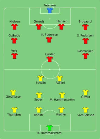 - ^ a b "Tactical Line-up – Sweden-Denmark" (PDF). UEFA. Union of European Football Associations. 10 July 2013. Archived from the original (PDF) on September 26, 2013. Retrieved 10 July 2013.