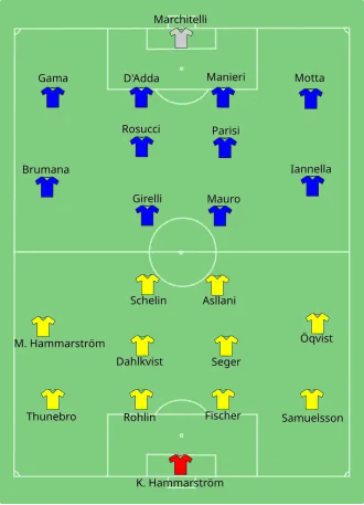 - ^ a b "Tactical Line-up – Sweden-Italy" (PDF). UEFA. Union of European Football Associations. 16 July 2013. Archived from the original (PDF) on September 27, 2013. Retrieved 16 July 2013.
