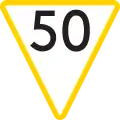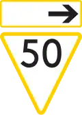 Permissible speed warning indicator for 50 mph, with a directional arrow