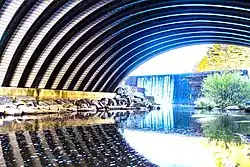 The Composite Arch Bridge System, commonly known as Bridge-in-a-Backpack, is a lightweight, corrosion resistant system for short to medium span bridge construction using composite arch tubes that act as reinforcement and formwork for cast-in-place concrete.[10] The center's innovative composite bridge system is American Association of State Highway and Transportation Officials approved, lowers construction costs, extends structural lifespan up to 100 years, and is a greener alternative to concrete and steel construction. Advanced Infrastructure Technologies is a privately held company licensed by the University of Maine to produce these bridges.