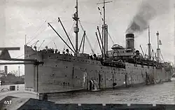 Neckar was launched on 8 December 1900 at Geestemünde, Germany, by Joh. C. Tecklenborg and was owned and operated by North German Lloyd. Neckar was 499.5 feet (152.2 m) long, had twin screws and quadruple expansion engines.[1] During 1900–1914, she was the third largest transporter of steerage passengers (nearly all immigrants) to the United States, most of whom disembarked in New York and Baltimore.[2] In the North Atlantic at the outbreak of World War I in the summer of 1914, the passenger and freight liner sought sanctuary at the neutral port, Baltimore, Maryland — lest she fall prey to the warships of the Royal Navy — and was interned, ostensibly for the duration of the conflict.