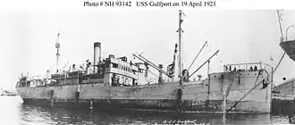 ![]() USS Gulfport (AK-5) at Norfolk Navy Yard, Portsmouth, Virginia, 19 April 1921.