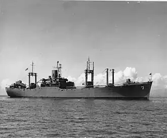 After round-trip delivery voyages to the Samoa Islands, the Fiji Islands, and Pearl Harbor, the Lassen began duty as an advanced base supply ship. Departing from San Francisco on 26 August 1942, the Lassen replenished naval ships in New Caledonia from 19 September to 17 January 1943. The ship arrived back at San Francisco on 23 January 1943 for repairs, the installation of radar equipment, and an upgrade in her air-defense armament.[2]