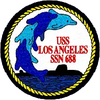 USS Los Angeles (SSN-688), lead ship of her class of submarines, was the fourth ship of the United States Navy to be named for Los Angeles, California. The contract to build her was awarded to Newport News Shipbuilding and Dry Dock Company in Newport News, Virginia on 8 January 1971 and her keel was laid down on 8 January 1972. She was launched on 6 April 1974 sponsored by Anne Armstrong, and commissioned on 13 November 1976. She hosted President Jimmy Carter and the First Lady on 27 May 1977 for an at-sea demonstration of her capabilities.[2] In 2007 she was the oldest submarine in active service with the United States Navy.[3] The Navy decommissioned Los Angeles on 23 January 2010, in the Port of Los Angeles, Los Angeles, California, her namesake city.[4]