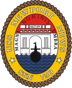 USS Newport News (SSN-750), a Los Angeles-class submarine, is the third ship of the United States Navy to be named for Newport News, Virginia. The contract to build her was awarded to Newport News Shipbuilding and Dry Dock Company in Newport News, Virginia, on 19 April 1982, and her keel was laid down on 3 March 1984. She was launched on 15 March 1986, sponsored by Mrs. Rosemary D. Trible, and commissioned on 3 June 1989. Mayor Jessie M. Rattley presented the ship with a commemorative plaque containing the poem "Newport News," written by Newport News native Ronald W. Bell, whose poem "Admiral Rickover" also appears upon a plaque aboard the Los Angeles-class submarine Hyman G. Rickover.