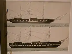 Princeton was employed with the Home Squadron from 1845 to 1847. She later served in the Mediterranean from August 17, 1847, to June 24, 1849. Upon her return from Europe, she was surveyed and found to require $68,000 ($2.57 million in present-day terms) to replace decaying timber and make other repairs. The price was deemed unacceptable, and a second survey was ordered.[29] She was broken up at the Boston Navy Yard that October and November.[30][31]