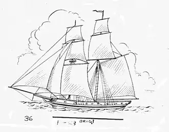![]() A brig-rigged warship similar to the Truxtun