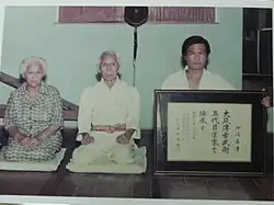 Upon Kanagusuku Ufuchiku's death, Shosei Kina (1882–1981)[7] became the second generation Soke or head master, even though he was the youngest and most junior of all the students. Kina first learned saijutsu from men in his village as a teen in Shimabuku,, excelling in Tsuken Shitahaku no Sai and Chatan Yara no Sai, but he began his training in ufuchiku kanagusuku in 1906, wherein he furthered his understandinog of use of the sai and jo/gusan and was exposed to the twenty-five weapons of Kanagsuku's kobujutsu.[8] Shosei Kina Okinawan students consisted of Shinyei Kyan, Shoshin Kina, Masanobu Kina, Kantoku Izumikawa, Seishin Higa, Kaishu Isa and Kiichi Nakamoto among others. Kina became a member of the Okinawa Kobudo Kyokai in 1961 and its continuation as the Okinawa Karate Kobudo Rengokai in 1968 from which he was awarded the 10th Dan Rank.[9] In October 1975, Kina Sensei founded the Ufuchiku-den Ryūkyū Kobujutsu Hozonkai and served as its first President with Kaishu Isa assigned as the Vice-President.