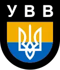 The Ukrainian Liberation Army (Ukrainian: Українське Визвольне Військо, УВВ; Ukrainske Vyzvolne Viysko, UVV) was an umbrella organization created in 1943,[1] providing collective name for all Ukrainian units serving with the German Army during World War II.[2] A single formation by that name did not exist.[2] The designation was used by Ukrainian nationalists in reference to a number of companies and local Ostbataillonen of Hiwi volunteers desiring to free their own territories from the Soviet rule. They included enlisted Ukrainian prisoners of war (POWs) of the Red Army.[2] The core of the Liberation Army wearing the УВВ sleeve badge (right, since 1945) originated from the 14th Waffen Grenadier Division of the SS (1st Ukrainian) reorganized in April 1945 into the Ukrainian National Army (UNA) active until the German surrender in May 1945.[3]