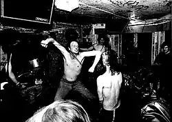 The house on the Källvägen 9 in the central Handen was now an activity house, the so-called Ultra house, where a variety of projects employing young people from the neighborhood took place. What makes the Ultra Hall is widely known, however, all the music concerts that were held there on weekends. Over the years there were thousands of concerts with nearly as many bands.[4] The rumor about that little house with the very small stage in the living room, adjacent to the kitchen where bun were baked spread. It attracted people from all over Stockholm (or even further away) to make the trip to Handen on the weekends. The attendance record of a gig there was when Ebba Grön played there in 1981, there were 200 people there. Other bands that played there include KSMB, Black Flag (with Henry Rollins), Scream (with Dave Grohl, later known with Nirvana and Foo Fighters) and Det svider i stjärten (with Zak Tell, later known with Clawfinger)[4] The most famous of the club enthusiasts was Tompa Eken.