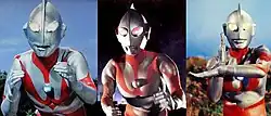 Writer Tetsuo Kinjo originally envisioned an intergalactic reptilian creature named Bemular to be the character that would become Ultraman. The creature could grow in size to 164 feet, with the design being a cross between Garuda and Tengu.[2][10] The original treatment was that Bemular would assist an attack team against threats such as other Kaiju. However, worries rose that viewers would be confused upon which monster to root for. Ultraman's memorable design was done by Tohl Narita and clay sculptor Akira Sasaki, with the grey alien concept in mind.[4] Three Ultraman body suits were created for the show, all of which were based on the size of suit actor Bin Furuya. A lot of improvements to Ultraman's design were made during the series' progression. The first suit was known as Type A (episodes 1 to 13), followed by Type B (14–29), and finally Type C (30 and subsequent episodes).
