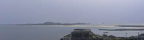 Umi no Nakamichi (海の中道; 'road in the middle of the sea' or 'path through the sea') is a tombolo in Higashi-ku, Fukuoka, Fukuoka Prefecture, Japan. It connects Kyushu Island and Shikanoshima Island. It is 8km in length and up to 2.5 km in width. Its northern coast borders Genkai Sea and its southern coast Hakata Bay.