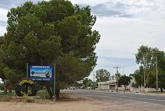 Underbool is a town in the Mallee region of north-west Victoria, Australia. The town is in the Rural City of Mildura local government area and on the Mallee Highway—between Ouyen and the South Australian border – 476 kilometres (296 mi) north west of the state capital, Melbourne. The town services the grain farmers and graziers in the area. For tourists it provides access to the Pink Lakes in Murray-Sunset National Park.