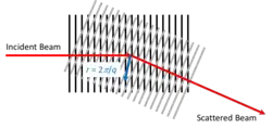 where G, Rg, and B are constants related to the scattering contrast, structural volume, surface area, and radius of gyration. q is the magnitude of the scattering vector which is related to the Bragg spacing, d, q = 2π/d = 4π/λ sin(θ/2). λ is the wavelength and θ is the scattering angle (2θ in diffraction).