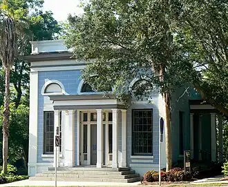 The Union Bank building was completed in 1841 as Tallahassee's first bank by William Williams when Florida was still a territory (Florida Territory). It was chartered to help finance local cotton plantations. It closed in 1843 due to the Seminole Wars, unsound banking practices, and the long recession following the Panic of 1837.
