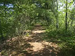 The eastern terminus of the turnpike was at the junction of what is today the intersection of Elm and Main streets in Concord. The road followed the present Massachusetts Route 111 westward from Concord through Boxborough to Harvard. Here it departed from Rt. 111, rising nearly 500 feet (150 m) in less than 1.5 miles (2.4 km), an incline of nearly 7%. This might have been one of the sections of the road, in Wood's words, "with a fatal disregard for grades." Such grades might require "either a greater number or more powerful horses than would be requisite if the road were entirely level."[10] From Harvard Center, the road went west on Madigan Lane, descending 750 feet (230 m) to what is now the Oxbow National Wildlife Refuge along a causeway named Turnpike Trail where it crossed the Nashua River entering Lancaster. In Lancaster, the turnpike followed the road currently called Old Union Turnpike then entered Leominster, traveled 2 miles (3 km) northwest through what is now a wooded area, then joined the current Prospect Street to Lindell Avenue and finally joined the 5th Massachusetts Turnpike at the Kendall Inn on West Street, for a total length of just over 23 miles (37 km) from Concord.