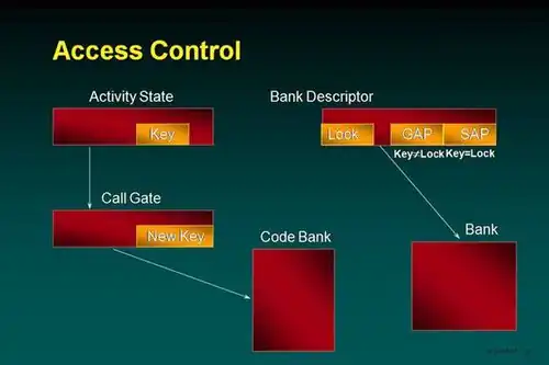 The BD also contains a key value and access control fields. The fields indicate whether read, write, or execute permission is granted to the instruction processor (3 bits). The Special Access Permissions (SAP) applies only to activities executing within the owning subsystem (really only those with a matching key value). The General Access Permissions (GAP) applies to everyone else and is usually zero (no access). The Exec sets a key value in the state of each activity which may be changed by gate and interrupt transitions.
