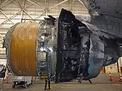 ![]() Inboard side of the right engine of N772UA after the incident | |