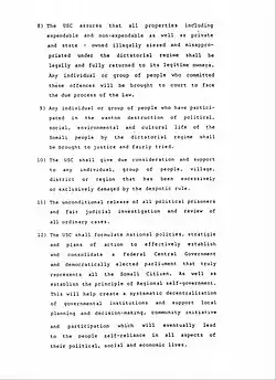 Although its members largely started off as associates of SODAF, SSDF and SNM, the USC in Rome had its own political program that offered a decentralised system to address the growing discontent with central rule after 10 years of rebel opposition.[8]