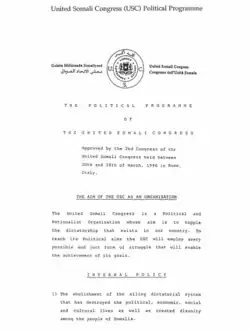 "The USC shall formulate national policies, strategy and plans of action to effectively establish and consolidate a Federal Central Government and a democratically elected parliament that truly represents all the Somali citizen. As well as establish the principle of regional self government. This will help create a systematic decentralisation of governmental institutions and support local planning and decision-making, community initiative and participation which will eventually lead to the people self-reliance in all aspects of their political, social and economic lives"