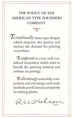 The printing equipment company ATF explicitly states in its 1923 manual that its goal is to 'discourage unhealthy competition' in the printing industry.
