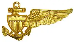 The Balloon Pilot Insignia appears as a "half-wing" version of the Naval Aviator Insignia. Its design was based on early versions of the Observer Badge.[3][4]
