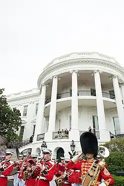 - Foreign heads of state and chiefs of government arriving at the White House are welcomed with the fanfare "Call to Statesmanship". At the conclusion of a state arrival ceremony, the President returns to the White House—generally entering either via the Blue Room or the Diplomatic Reception Room—to the fanfare "Presidential Processional".