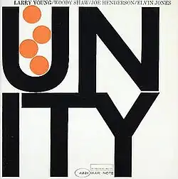 Unity is an album by jazz organist Larry Young, released on the Blue Note label in August, 1966. The album features trumpeter Woody Shaw, tenor saxophonist Joe Henderson and drummer Elvin Jones. While not free jazz, the album features experimentation that was innovative for the time. Young chose the title because, "although everybody on the date was very much an individualist, they were all in the same frame of mood. It was evident from the start that everything was fitting together."[6] The album was Young's second for Blue Note, and is widely considered a "post-bop" classic.