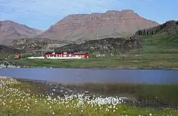 University of Copenhagen Arctic Station (Greenlandic: Københavns Universitetimi Arktisk Station; Danish: Københavns Universitets Arktiske Station)) is a year-round, environmental research facility in central West Greenland. Located about 300 metres (980 ft) northeast of Qeqertarsuaq, it faces Disko Bay and the Davis Strait on the south coast of Disko Island with the Blæsedalen valley to the north. The main building and the laboratory are within a nature sanctuary.[1] It was founded in 1906 by the botanist Morten Pedersen Porsild, and has since 1953 been owned by the University of Copenhagen Faculty of Science.