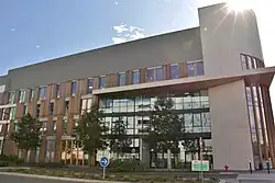 In 2002, Sylvie Faucheux became the president of the university. The university applied the réforme LMD to its courses in 2004.[7] The CFA d'Alembert was created at Guyancourt in 2006. In 2007, Unité de formation et de recherche médicale Paris Île-de-France Ouest (PIFO) moved to Saint-Quentin-en-Yvelines, and UniverSud Paris was established, with Paris-Sud 11 University, École Normale Supérieure de Cachan, and UVSQ as members, among others. In 2010, the humanities and social sciences college of UVSQ was split into four: the institut des études culturelles (cultural studies institute), institut supérieur de management (management institute), institut de langues et études internationales (languages and international studies institute), and social sciences research institute. The university expanded to develop the plateau de Saclay (in English European Silicon Valley), an area with world-class universities and research centers. As a founding member of UniverSud Paris, UVSQ supported scientific cooperation and the Paris-Saclay research-intensive cluster. A partnership with Cergy-Pontoise University was considered in 2011,[8] and Université du grand ouest parisien was created in February 2012.[9] An Institut d'études politiques commons for both universities is being studied.[10]