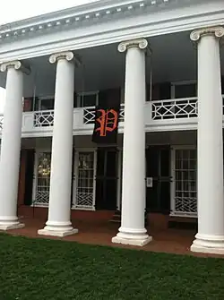 The earliest secret society at the university was probably the no-longer-secret Jefferson Literary and Debating Society, which at its 1825 founding was secret, with expulsion the penalty to any member who exposed the society's secrets.[1] Student society activity for the first period of the university appears to have been confined to similar literary societies, including the Patrick Henry Society, Philomathean Society, Parthenon Society, Columbian, and Washington Society, which were not secret societies; only the last is still active.[2]