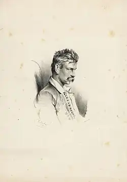 The Croats tried to be stopped at Szentmiklós by the National Guard battalion from Zalaszántó led by Major Károly Batthyány.[26] Although the 650-strong battalion had only 125 firearms, the rest being equipped only with spears and pitchforks, but it still attempted to hold off the Croats.[26] The battalion's task was to lure the retreating Croats to the firing line of the forces from Vas and Nagykanizsa, which were threatening the retreating Croats from the flanks.[26] According to a source, this was successful, although the fact that our spearmen converted the retreat into a general rout, spoiled, not in a slightly manner, the whole plan.[26] Upon this, the officers of the battalion saw the only way to escape from the dangerous situation, to order a retreat, and retreated through Magyarszentmiklós into the surrounding woods with their running troops.[26] The Zalaszántó Battalion was completely disintegrated during the retreat, although it lost only one dead.[26] The last to leave the battlefield was Major Batthyány, with the 8 National Guardsmen who remained with him. According to a Hungarian report, the Croats fired a total of 50 cannon shots, but their artillerymen were said to have fired very badly.[26]