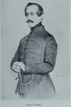 In the meantime, the Hungarian National Defence Commission (the temporary de facto Hungarian government led by Lajos Kossuth) declared a popular uprising against the occupying Croatian troops, which meant that the population should use guerrilla warfare to harm the occupiers wherever possible, cut off their supply routes, smash their supplies and weaken the troops in every way possible.[14] On 19 September, Prime Minister Lajos Batthyány appointed Vidos commander of the Vas popular uprising, and the next day gave him a task of great autonomy to decide what is the best way to achieve success.[4] The Prime Minister believed that in the event of Ban Jelacic's invasion and advance, the forces of the Transdanubian popular uprising and national guards should enter Croatia behind the back of the Ban.[4] Batthyány entrusted Vidos with the implementation of the plan.[4] Batthyány placed the national guards from Veszprém, Győr, Sopron, Zala, Moson, Somogy and, of course, Vas counties under the command of Vidos, the vice-ispán of Vas.[4] The force thus concentrated was to invade Croatia in two columns.[5] Vidos received the order on 23 September and began to concentrate the National Guard battalions under his command. He moved his headquarters to Szombathely, and ordered the forces of Sopron and Moson counties to come here.[5] He ordered the Győr County National Guard to Kiscell, the Veszprém County National Guard to Jánosháza, and the Somogy County National Guard to Körmend. He entrusted the concentration of the forces from Zala to government commissioner Vilmos Horváth.[5] He had serious problems with the supply of the mobilized national guards. Under these circumstances, he considered the success of the invasion of Croatia doubtful, but he nevertheless moved his troops towards Zala County.[4] on the Vashosszúfalu - Nagybajom - Marcali route.[5] According to reports from there, Muraköz was occupied by 2000 Croats. Vidos believed that it was impossible to keep his national guards together for any length of time, especially when the weather conditions were compounded by food shortages.[4] He, therefore, suggested to the Prime Minister that the army should attack an enemy troop as soon as possible.[15] The time for limited action was fast approaching. At the end of September, the Zala County Committee asked Vidos for help to liberate Nagykanizsa.[16] This attack also allowed Vidos to cut one of Jelacic's main supply lines.[16]