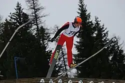 He frequently participated in junior competitions, primarily at the national level.[5][6][7] In the summer of 2004, he finished fifth in the Slovenian Cup in the under-13 category.[8] On 18 June 2005, he competed in the Perfect Milk Cup in Zakopane, jumping 55.5 and 61.5 metres to secure eighth place in the younger junior category, making him the top non-Polish competitor.[9][10] In March 2005, he competed in the OPA Games in Oberwiesenthal, finishing 18th individually in the competition for athletes born in 1990 or later and fifth in the team event.[11]