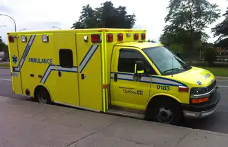 Urgences-santé (English: Health Emergencies) is the statutory public emergency medical service for the islands of Montreal and Laval, Quebec. The corporation operates a fleet of 165 vehicles[1] and employs over 1,300 people, including 891 professional paramedics. Urgences-santé is one of the largest paramedical services in Canada.