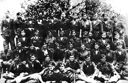 Until September 1942, the Ustaše militia was filled exclusively with volunteers. Since then, the Croatian Home Guard conscripts were given an option to carry out their obligatory military service in the Ustaše militia units too.[29] The recruitment of minors was initially not allowed, although their presence, mostly refugees, was not unusual.[30] In December 1944, the Ustaše Headquarters allowed the recruitment of minor volunteers from the age of 16.[31]