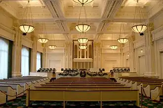 - There is a chapel used for the Sunday services of local wards. The chapel contains a Casavant Frères pipe organ with 2,484 pipes in 45 ranks across two manuals.[14] The organ is characterized by a French accent.[14][15]