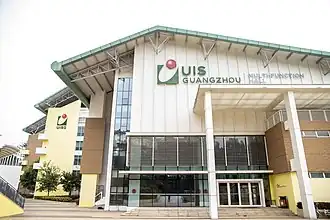 Utahloy International School Guangzhou (UISG) is a school with English-language class instruction in Baiyun District, Guangzhou.[1] UISG serves students aged 2 to 19 from over 50 countries. There are seven major native languages, including English, Chinese, Korean, French, Japanese, German, and Spanish. The school offers three types of programs: Primary Year, Middle Year, and Diploma. An average of 18 students per class, with a teacher-to-student ratio of 1 to 8.