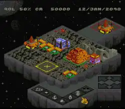 Ing states that he holds a design philosophy of making lists to organize a game's design prior to its development, stating that "first we generated a massive spec. It's about 100 pages long and details absolutely everything that needs to be done. Then what I always do is make a list of every single piece of code that needs to be written to make that spec. possible and work my way slowly though the list. Eventually it gets shorter".[1] A fully functional map screen was prioritized as the first part of Utopia to be programmed, and Ing states that "we created some temporary graphics for the buildings and then I worked on all the routines necessary to scroll around the world and select those buildings".[1] At this stage in development, Utopia lacked an isometric perspective, and the map screen was instead in 2D graphics.[1] Ing expresses in regards to this design change that "halfway through what was going to be a 2D sim we decided it would look a lot better with an extra dimension".[1] Ing expresses that the transition from 2D to 3D midway through development was a complication, stating that "there were a lot of problems when we switched to 2D to 3D. For example, the game involves a lot of ground vehicles moving behind and around the buildings and that took ages to work out".[1] A map editor was designed for Utopia during development to 'simplify' map design, and Ing expresses that "basically, all it is is a modified version of the game itself with the gameplay taken out and all the facilities to help us construct the scenario maps".[1]