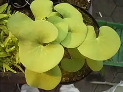 Utricularia reniformis is a large perennial carnivorous plant that belongs to the Bladderwort genus Utricularia of the family Lentibulariaceae. U. reniformis is endemic to Brazil. It was originally published and described by Augustin Saint-Hilaire in 1830. It usually grows as a terrestrial plant in wet grasslands and only sometimes as an epiphyte in the water-filled leaf axils of some bromeliad species. It is typically found between altitudes of 750 m (2,461 ft) and 1,900 m (6,234 ft) in its southern range and up to 2,500 m (8,202 ft) in its northern range. It has been collected in flower between October and March.[1]