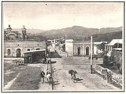 During the late 19th century Utuado experienced an explosive economic growth centered around the cultivation of coffee, also known at the time as oro negro or "black gold". By the 1890s Utuado was the largest producer of coffee in Puerto Rico and the second municipality (after Ponce) with the largest population. It produced a rich social life for many of its citizens and a casino and theatre were established in the town. The progress of the town was so evident that the regent Queen of Spain, María Cristina, honored the town with the title of Ciudad (City) on August 20, 1894.[5] In 1896 or 1897 Utuado was the first city in Puerto Rico with a public electric lighting system powered by a hydraulic turbine power plant,[6][7] and in that same year mayor Juan Casellas planned a train system to connect Utuado with Arecibo. By 1899 this golden era ended due to two events: the United States occupation of the island in 1898, which made sugar the new crop of importance instead of coffee (Utuado's mountainous landscape was not ideal for growing sugarcane, making it impossible for it to compete in the sugar industry), and Hurricane San Ciriaco in 1899, which destroyed the coffee haciendas.