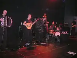 The birth of Värttinä was heavily influenced by two sisters, Sari and Mari Kaasinen, from Rääkkylä.[1] Guided by their mother, they had performed poems from the 1970s as a group named Tsupukat.[2] After the group ceased in 1983, the girls established Värttinä, which they entered into a youth arts event and made their way into the finals. The following year they changed poem reading into singing, and this time the group won that same competition. In 1985 Värttinä, now having male members as well, made its first appearance in the Kaustinen Folk Music Festival.[3] Folk music circles became aware of the band as the one singing "korkeelta ja kovvoo" (high and loud).