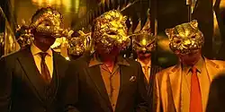 The VIPs were created by Hwang Dong-hyuk and played by numerous actors, most of them American.[3] The fact that their faces are never seen and they only wear masks represents a symbol.[4] VIPs wear golden animal masks that, in addition to serving to maintain their anonymity, also represent their power with their wealth and the animal-like nature of the life-or-death games. All animal masks represent a distinctive meaning for each VIP.[5]