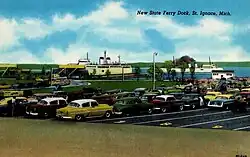The Michigan State Highway Department began operating an auto ferry service across the Straits of Mackinac in 1923, using the Ariel, a 95-foot (29 m) ferry converted to carry 20 automobiles. The service supplemented the expensive and irregularly scheduled automobile service of the existing railroad ferries across the Straits, and proved popular in its first year.[4] The service grew rapidly, with the acquisition of multiple secondhand automobile and railroad ferries from other operators on the Great Lakes. The service initially operated during the summer only, with regular winter service beginning in 1936. The winter service used the Sainte Marie (II), a railroad icebreaker leased by the State Highway Department.[5][6]