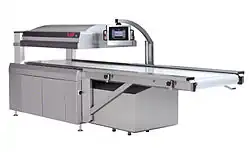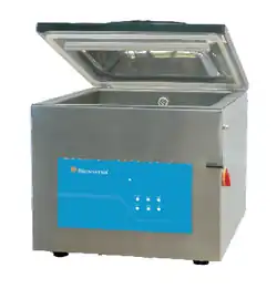 Automatic belt chamber sealers require the entire product to be placed in a plastic bag or flow wrapped pouch within the machine. The product travels on the conveyor belt, it is automatically positioned in the machine on the seal bar, the lid is closed and air is removed. Then a seal bar inside the chamber seals the product in the bag. After sealing the bag, the chamber is refilled with air by the automatic opening of a vent to the outside. This oncoming pressure squeezes all remaining air in the bag. The lid is then opened and the product removed. Automatic belt vacuum chamber machines are typically used for high-speed packaging of large items, and also have the capability to vacuum seal liquids. The lid generally travels straight up and down.